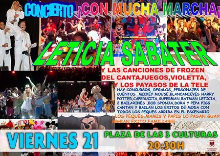 FRIGILIANA – Samen met haar dansgroep verzorgt zangeres Lectica Sabater op vrijdag 21 augustus een show voor kinderen op het Plaza de las 3 Culturas van Frigiliana. Deze begint rond 20.30 uur en is gratis te bezoeken.