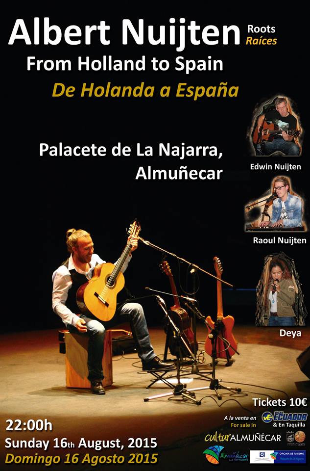 Onder de titel ‘Albert Nuijten & Family in Concert’ staat dit optreden gepland in het Palacete de la Najarra aan de Calle Guadix 12 in Almuñécar. De aanvangstijd is circa 22.00 uur, de toegangsprijs bedraagt 10 euro per persoon. De formatie wordt gevormd door Albert Nuijten, Edwin Nuijten (beiden op gitaar), toetsenist Raoul Nuijten en zangers Deya.