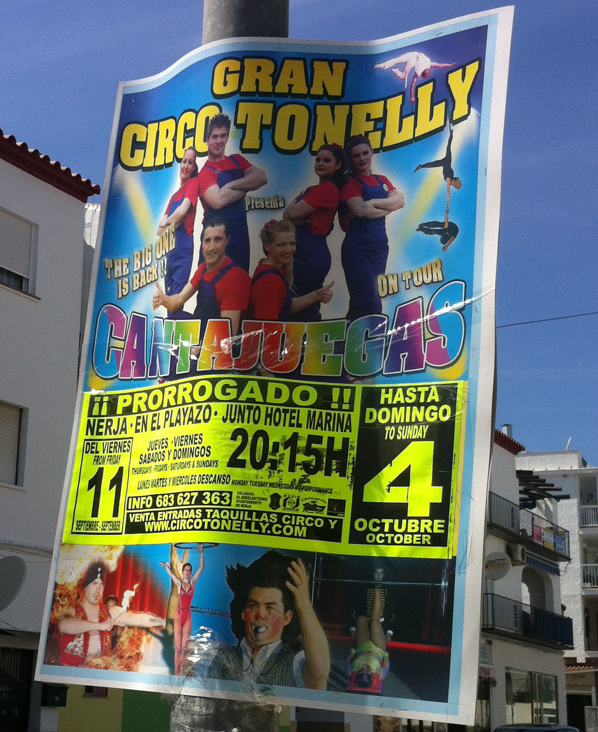 Daarbij zijn onder meer trapeze-artiesten, clowns, jongleurs en acrobaten te bewonderen. Het Gran Circo Tonelly staat in die periode aan het strand van Playa Playazo, tussen Nerja en het buurdorp Punta Lara.