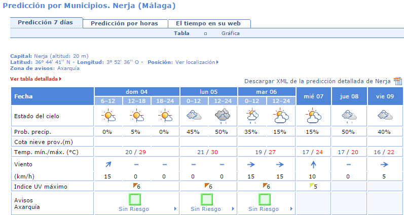 NERJA – De aanstaande kermis van Nerja betekent per traditie het einde van het hoogseizoen in Nerja en tevens vaak een omslag in het weer. Zoals het er nu naar uitziet is het dit jaar geen uitzondering: de weerkundigen van het Spaanse meteorlogisch instituut Aemet voorzien vanaf maandag 5 oktober hardnekkige wolkendekken boven Nerja, waaruit gedurende de week ook af en toe wat regen kan vallen.