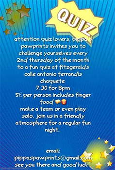 NERJA – Bij Fitzgerald’s Bar in Nerja staat donderdagavond 25 juni een (Engelstalige) quizavond op het programma, waarbij de opbrengsten ten goede komen aan de dierenstichting Pawprints Charity.