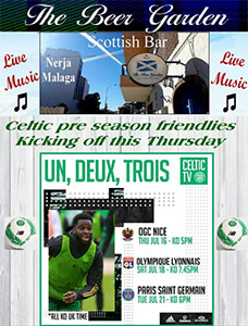 NERJA – De serie aan voorbereidingswedstrijden op het nieuwe voetbalseizoen van de Schotse club Celtic is deze maand in Nerja te zien bij de Schotse bar/restaurant The Beer Garden. Deze is gevestigd aan de Avenida Mediterraneo 1 in Nerja.