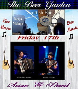 Duo Susan & David bij The Beer Garden in Nerja NERJA – Het duo Susan & David treedt vrijdagavond 17 juli op bij bar/restaurant The Beer Garden. Deze is gevestigd aan de Avenida Mediterraneo 1 in Nerja. Het optreden in de Schotse bar begint rond de klok van 18.30 uur en duurt ongeveer drie uur. Delen: Klik om te delen op X (Opent in een nieuw venster) X Klik om te delen op Facebook (Opent in een nieuw venster) Facebook Vind-ik-leuk Aan het laden...