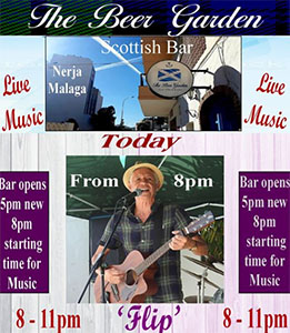 NERJA – De zanger/gitarist Flip verzorgt woensdag 29 juli een optreden in de Schotse bar The Beer Garden. Deze is gevestigd aan de Avenida Mediterraneo 1 in Nerja.