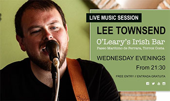 TORROX – De Britse zanger/gitarist Lee Townsend treedt woensdagavond 5 augustus op bij O’Leary’s Bar, aan de Paseo Maritimo de Ferrara in Torrox-Costa. Het optreden begint om 21.30 uur.