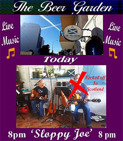 Sloppy Joe maakte voorheen deel uit van de formatie Free Booze. Het optreden in de Schotse bar begint rond de klok van 20.00 uur en duurt ongeveer drie uur.