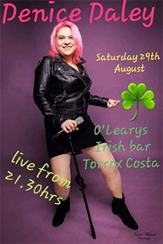 Optreden Denice Daley bij Ierse pub O’Leary’s in Torrox TORROX – De zangeres Denice Daley treedt zaterdagavond 29 augustus op bij O’Leary’s Irish Bar aan de Paseo Maritimo de Ferrara in Torrox. Het optreden begint rond 21.30 uur, het is de eerste keer dat Daley optreedt bij O’Leary’s. Delen: Klik om te delen op X (Opent in een nieuw venster) X Klik om te delen op Facebook (Opent in een nieuw venster) Facebook Vind-ik-leuk Aan het laden...