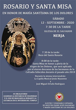 In plaats daarvan wordt er zaterdag 12 september een mis gehouden in de El Salvador-kerk (naast het Balcón de Europa). Deze mis begint rond 19.30 uur. Potentiële bezoekers wordt dringend verzocht de onderling gewenste afstand te respecteren, het dragen van een mondmasker is verplicht.