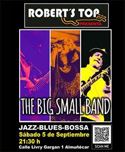 ALMUNECAR – In bar/restaurant Robert’s Top in Almuñécar staat zaterdagavond 5 september een optreden geprogrammeerd van The Big Small Band. Het optreden begint rond 21.30 uur en duurt tot circa middernacht.