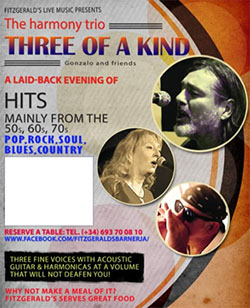 NERJA – Bij Fitzgerald’s Bar, op de hoek van park Verano Azul onder het pand van de SuperSol-supermarkt in Nerja , treedt woensdagavond 9 september ‘The Harmony Trio Three of a kind’ op.