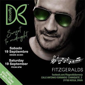 NERJA – De dj Steve Altman (‘Discofly’) draait zaterdagavond 19 september bij Fitzgerald’s Bar, op de hoek van park Verano Azul (Calle Antonio Ferrandis Chanquete) onder het pand van de SuperSol-supermarkt in Nerja.