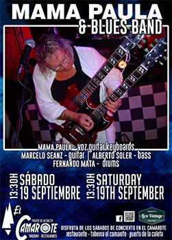 CALETA DE VELEZ – De Mama Paula Bluesband treedt zaterdag 19 september op in Caleta de Velez. Dit gebeurt bij bar/restaurant El Camarote in La Caleta de Vélez, aan de kustweg N-340 tussen Nerja en Málaga.