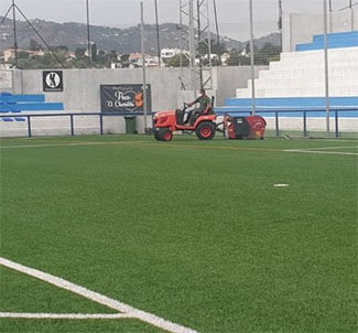 NERJA – Op de diverse sportfaciliteiten van Nerja zijn deze en komende week medewerkers van gespecialiseerde bedrijven bezig met onderhoudswerkzaamheden aan de ondergronden van deze sportparken. Daarbij worden onder meer het voetbalterrein op het Parque Verano Azul, de gemeentelijke padel- en tennisbanen alsmede het voetbalveld van het Pepe Luis Bobadilla-stadion onder handen genomen.