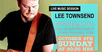 NERJA – Bij Fitzgerald’s Bar, op de hoek van park Verano Azul onder het pand van de SuperSol-supermarkt in Nerja. treedt zondagavond 4 oktober de Britse zanger/gitarist Lee Townsend op. Het optreden begint om circa 20.00 uur.