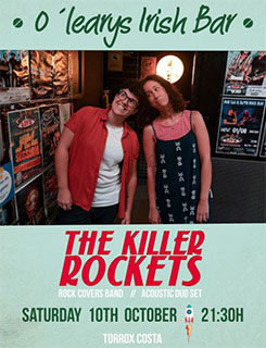 TORROX – Het duo The Killer Rockets speelt zaterdag 10 oktober in de kustplaats Torrox, op circa tien kilometer van Nerja gelegen. Dit gebeurt in O’Leary’s Irish Bar aan de Paseo Maritimo de Ferrara.