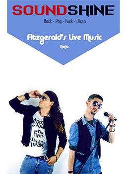 NERJA – De formatie Soundshine treedt zondagavond 11 oktober op bij Fitzgerald’s Bar, op de hoek van park Verano Azul (Calle Antonio Ferrandis Chanquete) onder het pand van de SuperSol-supermarkt in Nerja.
