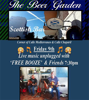 Free Booze speelt bij The Beer Garden NERJA – De formatie Free Booze treedt vrijdagavond 9 oktober op in bar/restaurant The Beer Garden. Deze is gevestigd aan de Avenida Mediterraneo 1 in Nerja. Het optreden in de Schotse bar begint rond de klok van 19.30 uur en duurt ongeveer drie uur. Delen: Klik om te delen op X (Opent in een nieuw venster) X Klik om te delen op Facebook (Opent in een nieuw venster) Facebook Vind-ik-leuk Aan het laden...