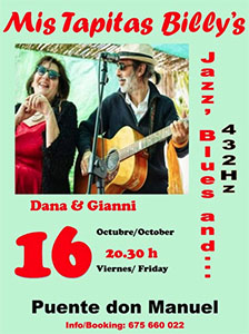 Dana Andrews en Gianni Piras bij Mis Tapitas Billy’s PUENTE DON MANUEL – Het duo Dana Andrews (zang) en Gianni Piras (gitaar) treedt vrijdag 16 oktober op bij de bar Mis Tapitas Billy’s in het dorp Puente Don Manuel (bij het meer van Viñuela). Het optreden begint rond de klok van 20.30 uur. Delen: Klik om te delen op X (Opent in een nieuw venster) X Klik om te delen op Facebook (Opent in een nieuw venster) Facebook Vind-ik-leuk Aan het laden...