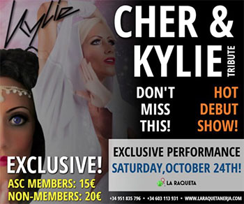 NERJA – In het restaurant van het tennis- en paddlepark La Raqueta (naast de N-340 ter hoogte van de afslag naar Playa Burriana) in Nerja treedt zaterdagavond 24 oktober het duo Cher & Kylie op. Het optreden begint rond 21.00 uur.