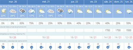 NERJA – De Spaanse meteorologische dienst Aemet (Agencia Estatal de Meteorología) verwacht voor woensdagavond 21 oktober en donderdagochtend 22 oktober regenval in en rond Nerja. Ook in de nacht van dinsdag op woensdag is er volgens de weerkundigen een kans op neerslag.