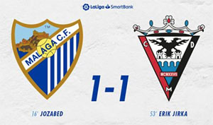 De thuisclub ging wel voortvarend van start en nam na een kwartier spelen de leiding in de wedstrijd. Jozabed Sánchez Ruiz tekende voor de treffer namens Málaga. Acht minuten na rust bracht de Slowaak Erik Jirka met zijn treffer de beide ploegen weer op gelijke hoogte. Málaga staat nu, na acht competitiewedstrijden, op de vierde plaats in de Segunda División.