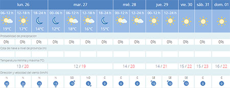 Dit voorzien de meteorologen van de Spaanse meteorologische dienst Aemet (Agencia Estatal de Meteorología) in hun meest recente weersvoorspellingen. Daaruit blijkt dat de zon zich met ingang van donderdag weer volop laat zien en dat de kans op neerslag vrijwel nihil is.