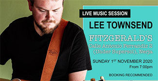 NERJA – De Britse zanger/gitarist Lee Townsend treedt zondagavond 1 november op bij Fitzgerald’s Bar, op de hoek van park Verano Azul (Calle Antonio Ferrandis Chanquete) onder het pand van de SuperSol-supermarkt in Nerja. Het optreden begint rond de klok van 19.00 uur.