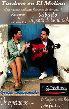 NERJA – Bij bar El Molino in de binnenstad van Nerja is op zaterdag 31 oktober live muziek te beluisteren. Het optreden wordt verzorgd door Cynthia Martín Cortés en Jesús Rosa en begint om 16.00 uur.