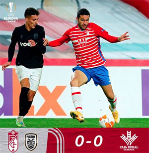 GRANADA – Tegen het Griekse PAOK Saloniki kwamen de voetballers van het Andalusische Granada CF donderdagavond 29 oktober in het eigen stadion Nuevo Las Cármenes niet verder dan een 0-0 gelijkspel. Met dit resultaat werd wél de ongeslagen status op Europees niveau behouden.