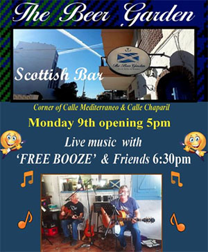Formatie Free Booze speelt bij The Beer Garden NERJA – De formatie Free Booze treedt maandagavond 9 november op in bar/restaurant The Beer Garden. Deze is gevestigd aan de Avenida Mediterraneo 1 in Nerja. Het optreden in de Schotse bar begint rond de klok van 18.30 uur. Delen: Klik om te delen op X (Opent in een nieuw venster) X Klik om te delen op Facebook (Opent in een nieuw venster) Facebook Vind-ik-leuk Aan het laden...