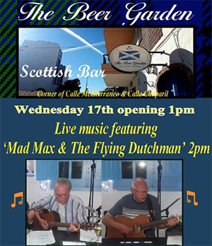 NERJA – Bij bar/restaurant The Beer Garden staat woensdag 18 november een muzikaal optreden gepland van het duo Mad Max & The Flying Dutchman.