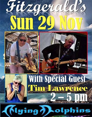 NERJA – De in de Axarquía-regio vermaarde en populaire band The Flying Dolphins treedt zondag 29 november op bij Fitzgerald’s Bar, op de hoek van park Verano Azul (Calle Antonio Ferrandis Chanquete) onder het pand van de SuperSol-supermarkt in Nerja.