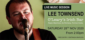 TORROX – De Britse zanger/gitarist Lee Townsend treedt zaterdagmiddag 28 november op bij O’Leary’s Bar aan de Paseo Maritimo de Ferrara in Torrox-Costa. Het optreden begint om circa 14.00 uur, de entree is gratis.
