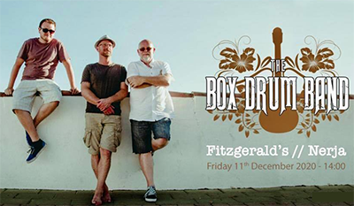 NERJA – The Box Drum Band treedt vrijdag 11 december op bij Fitzgerald’s Bar in Nerja, op de hoek van park Verano Azul onder het pand van de SuperSol-supermarkt in Nerja.