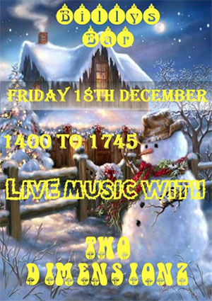 Band 2DimensionZ vrijdag bij Mis Tapitas Billy’s PUENTE DON MANUEL – De band 2DimensionZ treedt vrijdag 18 december op bij Mis Tapitas Billy’s in het dorp Puente Don Manuel (bij het meer van Viñuela). Het optreden begint rond de klok van 14.00 uur en duurt tot circa 17.30 uur. Delen: Klik om te delen op X (Opent in een nieuw venster) X Klik om te delen op Facebook (Opent in een nieuw venster) Facebook Vind-ik-leuk Aan het laden...