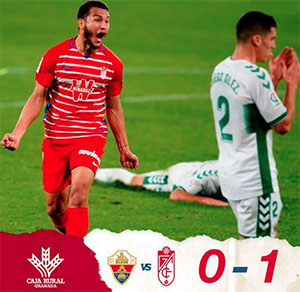 ELX – In het voetbalstadion Manuel Martínez Valero van Elche in de regio Valencia heeft Granada CF zondagavond 13 december een 0-1 overwinning geboekt in de voetbalcompetitie voor de Primera División. Thuisclub Elche CF had weliswaar gedurende de gehele wedstrijd een licht overwicht maar Granada had aan één kans genoeg om de drie punten mee te nemen naar Andalucía: 0-1.