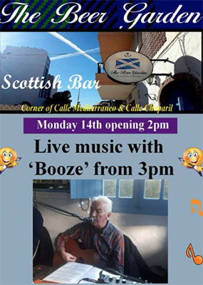 Optreden ‘Booze’ bij The Beer Garden in Nerja NERJA – De gitarist ‘Booze’ treedt maandagmiddag 14 december op bij bar/restaurant The Beer Garden. De Schotse bar is gevestigd aan de Avenida Mediterraneo 1 in Nerja. Het optreden begint rond de klok van 15.00 uur en duurt tot circa 17.30 uur. Delen: Klik om te delen op X (Opent in een nieuw venster) X Klik om te delen op Facebook (Opent in een nieuw venster) Facebook Vind-ik-leuk Aan het laden...
