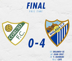 VIGO – In de eerste ronde van de strijd om de Spaanse voetbalbeker (Copa del Rey, red.) had Málaga CF weinig moeite met opponent Coruxo FC, een club die voor de competitie uitkomt in de Segunda División B Grupo I. In Vigo werd het woensdagmiddag 16 december 0-4 voor Málaga.