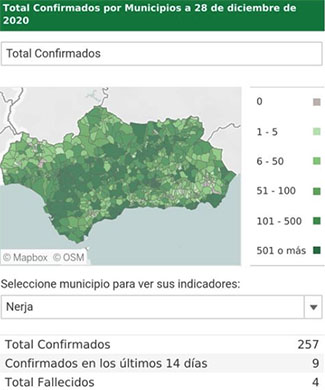 In totaal zijn er in Nerja, sinds het begin van de pandemie in maart, nu 257 Covid-19 besmettingen geconstateerd, waarvan 240 gevallen inmiddels genezen zijn verklaard. Binnen de gemeente Nerja zijn dit jaar volgens de gezondheidsdiensten vier mensen overleden aan de gevolgen van het virus. Tijdens de laatste twee weken zijn er negen nieuwe gevallen aan het licht gekomen.
