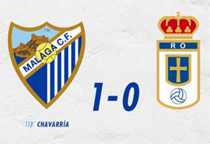 MALAGA – In het voetbalstadion La Rosaleda van Málaga plaatste Málaga CF zich woensdagavond 6 januari via een 1-0 overwinning op Real Oviedo voor de derde ronde van de Spaanse voetbalbeker Copa del Rey. Na negentig minuten voetbal stond er nog altijd een 0-0 stand op het scorebord, de winnende treffer kwam pas twee minuten voor het verstrijken van de verlenging tot stand: 1-0.