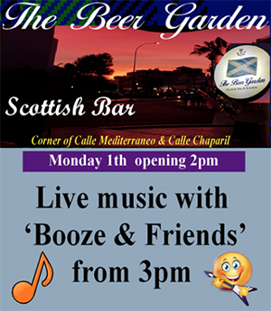 NERJA – De gitarist ‘Booze’ treedt maandagmiddag 11 januari op bij bar/restaurant The Beer Garden. Deze Schotse bar is gevestigd aan de Avenida Mediterraneo 1 in Nerja.