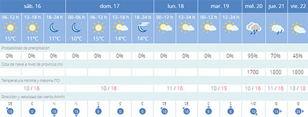 NERJA – De Spaanse meteorologische dienst Aemet (Agencia Estatal de Meteorología) verwacht voor dit weekeinde en het begin van de komende week een aantal zonnige dagen voor Nerja en omgeving. De gemiddelde dagtemperaturen halen daarbij waarden van circa 16 graden Celsius.