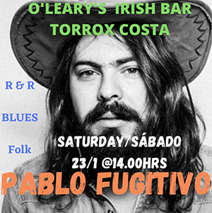 TORROX-COSTA – De artiest Pablo Fugitivo treedt zaterdagmiddag 23 januari op in de kustplaats Torrox, op circa tien kilometer van Nerja gelegen. Dit gebeurt in O’Leary’s Irish Bar aan de Paseo Maritimo de Ferrara.