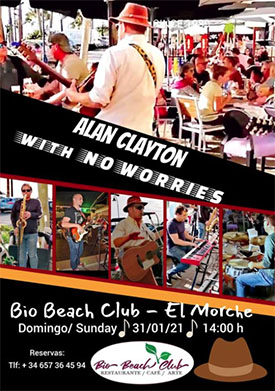 EL MORCHE – De Britse gitarist Alan Clayton treedt zondagmiddag 31 januari met zijn band op in de kustplaats El Morche. Dit gebeurt bij de Bio Beach Club aan de Paseo Marítimo 5 in El Morche.