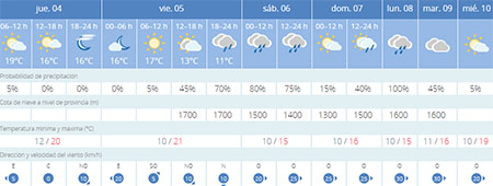 De Spaanse meteorologische dienst Aemet (Agencia Estatal de Meteorología) voorziet in haar vooruitblik vooral op zaterdag een regenkans rond Nerja. Ook voor de eerste dagen van de volgende week zijn de vooruitzichten somber, daarna klaart het volgens de meteorologen op en lopen de temperaturen weer op naar de grens van 20 graden Celsius.