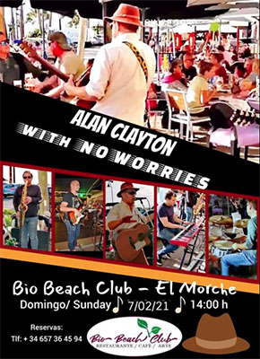 EL MORCHE – De Britse gitarist Alan Clayton treedt zondagmiddag 7 februari met zijn band op in de kustplaats El Morche. Dit gebeurt bij de Bio Beach Club aan de Paseo Marítimo 5 in El Morche.