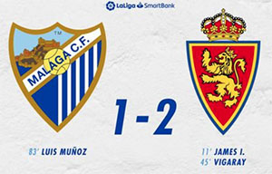MALAGA – In het eigen La Rosaleda-stadion ging Málaga CF zondagmiddag 7 februari in de voetbalcompetitie voor de Segunda División met 1-2 onderuit tegen het bezoekende Real Zaragoza. De thuisclub had een licht veldoverwicht maar kreeg in de eerste helft twee tegentreffers om de oren en zag geen kans deze schade te herstellen.