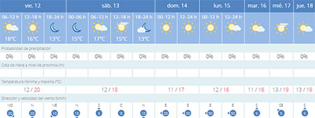 NERJA – Na de regenval in het begin van deze week verwachten de meteorologen een zonnig weekeinde voor Nerja en omgeving. Dit blijkt uit de weersvoorspellingen van de Spaanse meteorologische dienst Aemet (Agencia Estatal de Meteorología), die voor de komende dagen veel zon en gemiddelde dagtemperaturen van circa 18 graden Celsius voorzien.