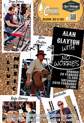 LA CALETA DE VELEZ – In bar/restaurant El Camarote in La Caleta de Vélez, een kleine 20 kilometer onder Nerja richting Málaga gelegen, treedt zaterdagmiddag 20 februari de Britse artiest Alan Clayton op met zijn show ‘Alan Clayton with no worries’.