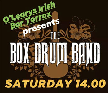 TORROX – The Box Drum Band (met onder meer de in de Axarquía-regio populaire zanger en gitarist Lee Townsend in de gelederen) treedt zaterdag 20 februari op in de kustplaats Torrox, op circa tien kilometer van Nerja gelegen. Dit gebeurt in O’Leary’s Irish Bar aan de Paseo Maritimo de Ferrara.